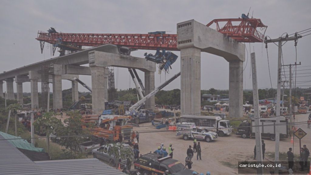 Sesaat sebelum derek jatuh, alat berat itu sedang mengangkat segmen beton besar, menurut media lokal The Nation.