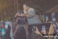 Kehadiran Prabowo di Batang Toru disambut antusias warga. Mereka berebut salaman dengan Presiden.
